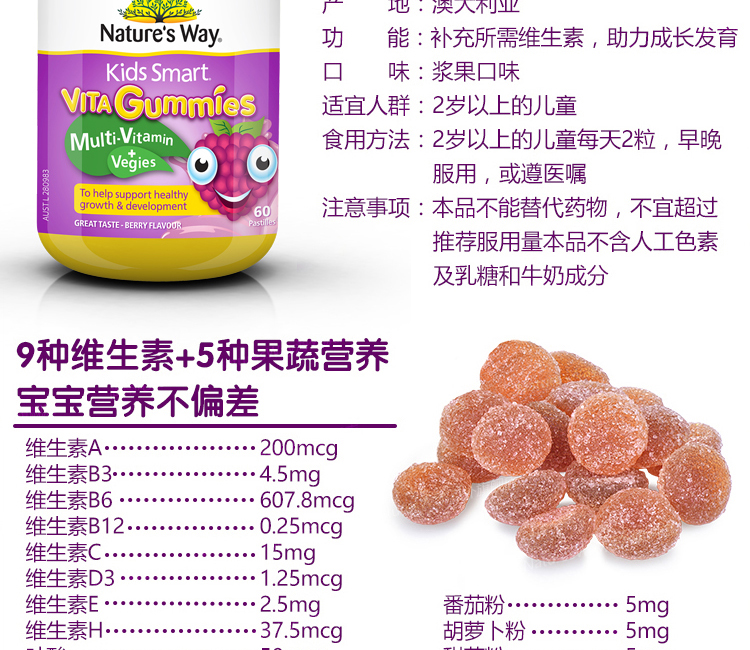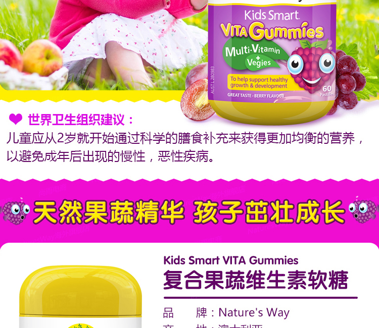 澳洲 佳思敏(Nature's Way)复合维生素+蔬菜软糖 60粒