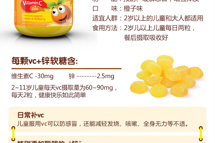 澳洲 佳思敏(Nature's Way)儿童维生素C+锌软糖 60粒