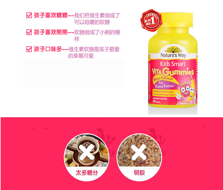 澳洲 佳思敏(Nature's Way)儿童挑食专用复合维生素软糖 60粒