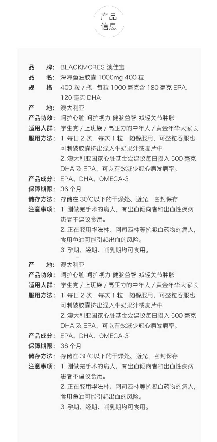 Blackmores百丽康美深海鱼油原味400粒