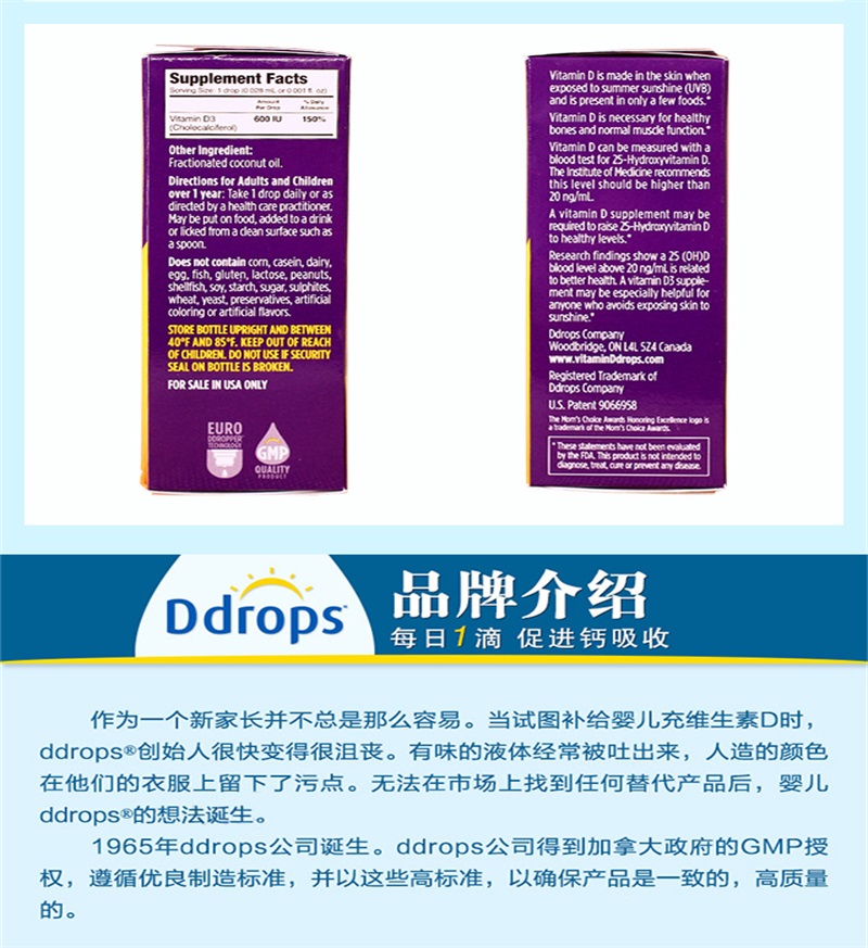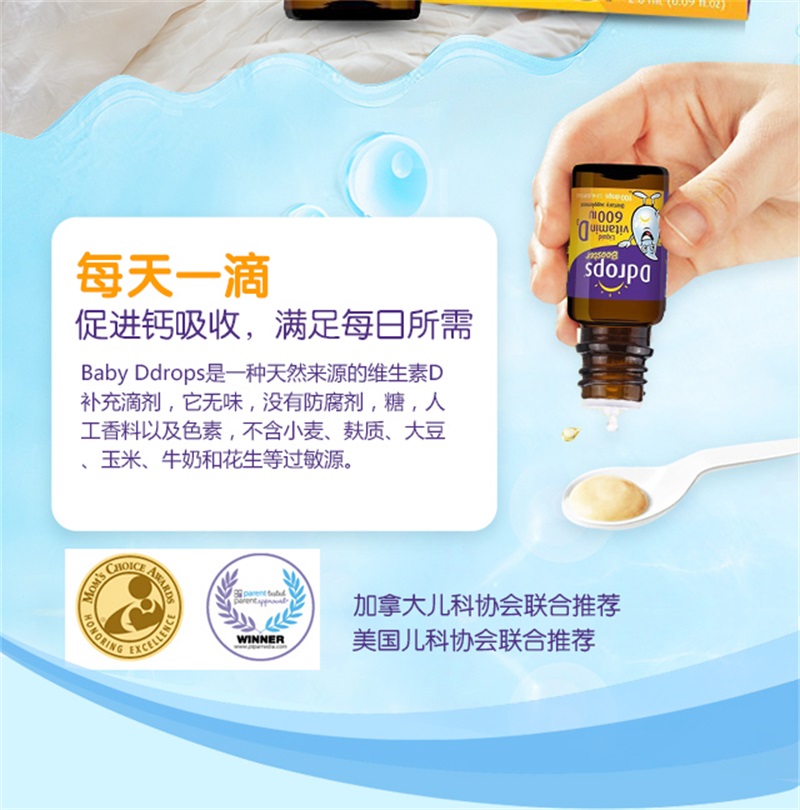 美国 Ddrops 幼儿维生素D3滴剂 600IU100滴(紫色)