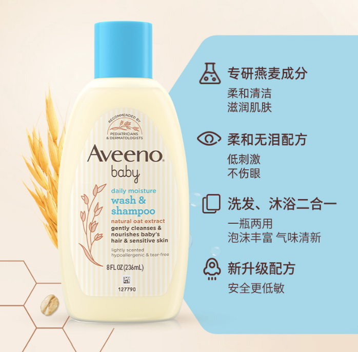 Aveeno艾维诺婴儿燕麦洗发沐浴液二合一236ml浅蓝